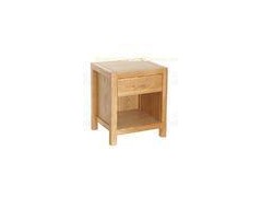 This is a square bedside table, it is made of pure solid ash wood material, and the surface finishing is done with natural color, NC lacquered. It is small and simple with overall size 46*40*55cm, but it's very useful. With one drawer at top part and space at bottom part, it can meet your requirement to keep small stuff.