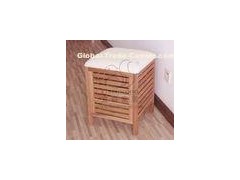 This is a bathroom walnut storage stool, upholstered, inside space is used for storing towel or other stuff.